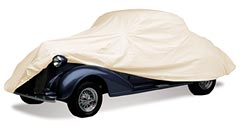 | Get It Covered The best place to store a car is out of the weather, preferably inside a building that's cool, dark, and dry. If you don't have a garage, look into renting one. If this isn't possible, a reasonable alternative is to store it inside a portable enclosure, or portable garage. If the vehicle will be completely sealed from outside air, place a couple bags of desiccant inside the enclosure with it to absorb trapped moisture. Whether outside or inside, cover your collectible with a quality car cover that has thick, multi-layered fabric. We recommend a car cover made with DUSTOP® Fabric - Soft as Flannel. Provides more than four times the dust protection of woven flannels while providing comparably soft protection for your car's finish. Thicker, for better protection against scratches and dings and lighter than flannel car covers so it's easier to use. Three-year warranty. Available in tan. |